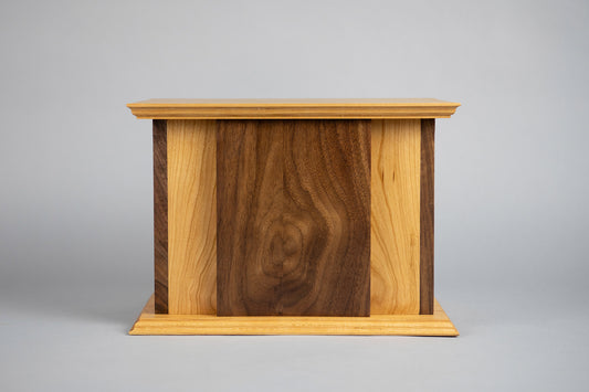 Cherry and Walnut Cremation Urn in Craftsman Style, Standard Adult Size